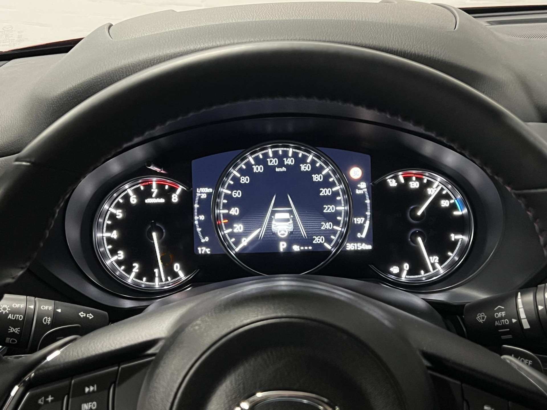 - Mazda Radar Cruise Control (MRCC): houdt ingestelde snelheid aan en bewaart gewenste afstand tot voorganger (incl. stop & go-functie)